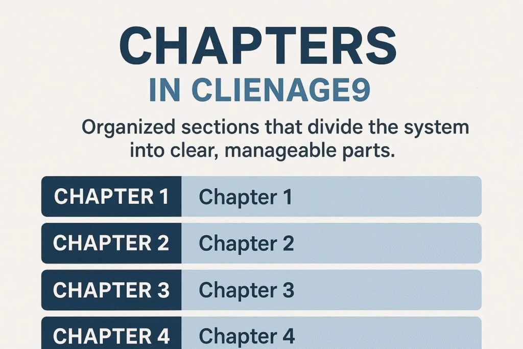 Chapters in clienage9 are organized sections that divide the system into clear, manageable parts.