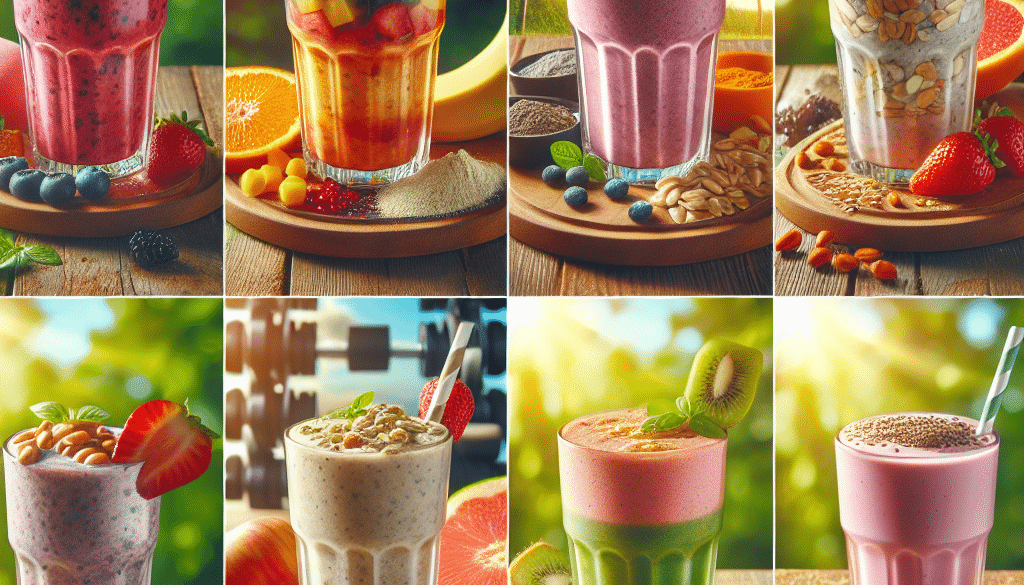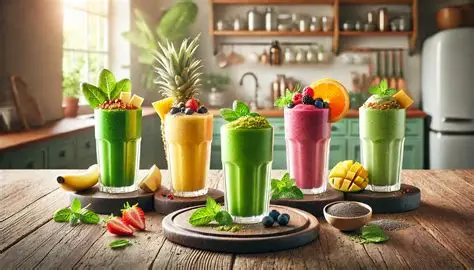 Fruits, vegetables, seeds, nuts, oats, and natural bases like coconut water or yogurt are ideal. The key is balance and creativity.